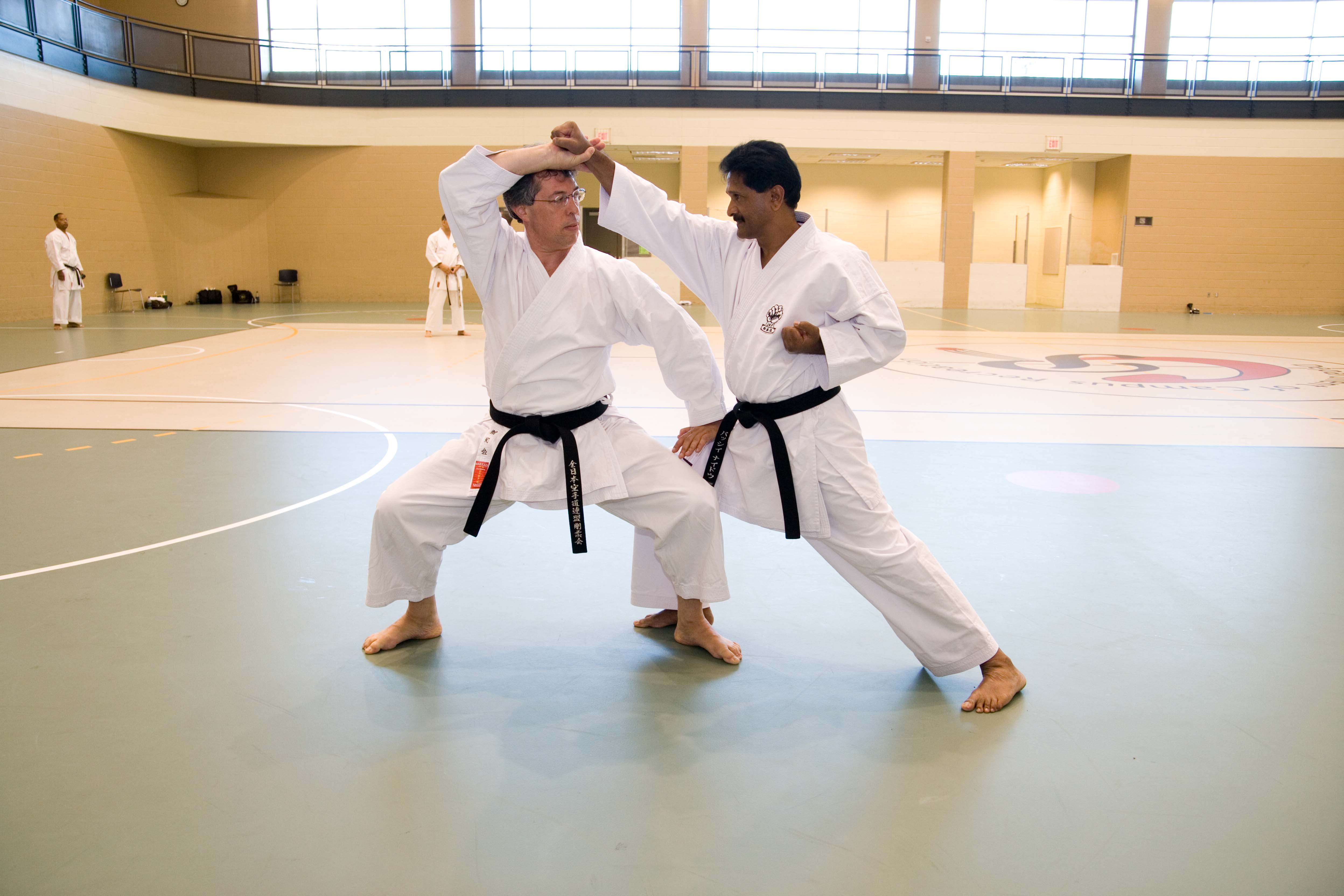 The test involves performing three separate forms (kata), two of which are isometric and involve no kicking. The third one, Kururunfa, which you can see here on Youtube performed by the winners of last year’s world championships, does involve four kicks, two kansetsu-geris and two front kicks.
